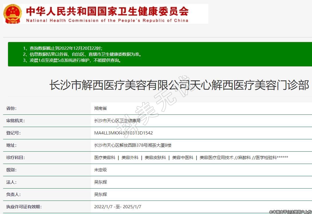 長(zhǎng)沙市解西醫(yī)療美容有限公司天心解西醫(yī)療美容門診部