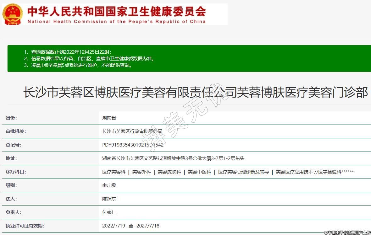 長沙市芙蓉區(qū)博膚醫(yī)療美容有限責任公司芙蓉博膚醫(yī)療美容門診部