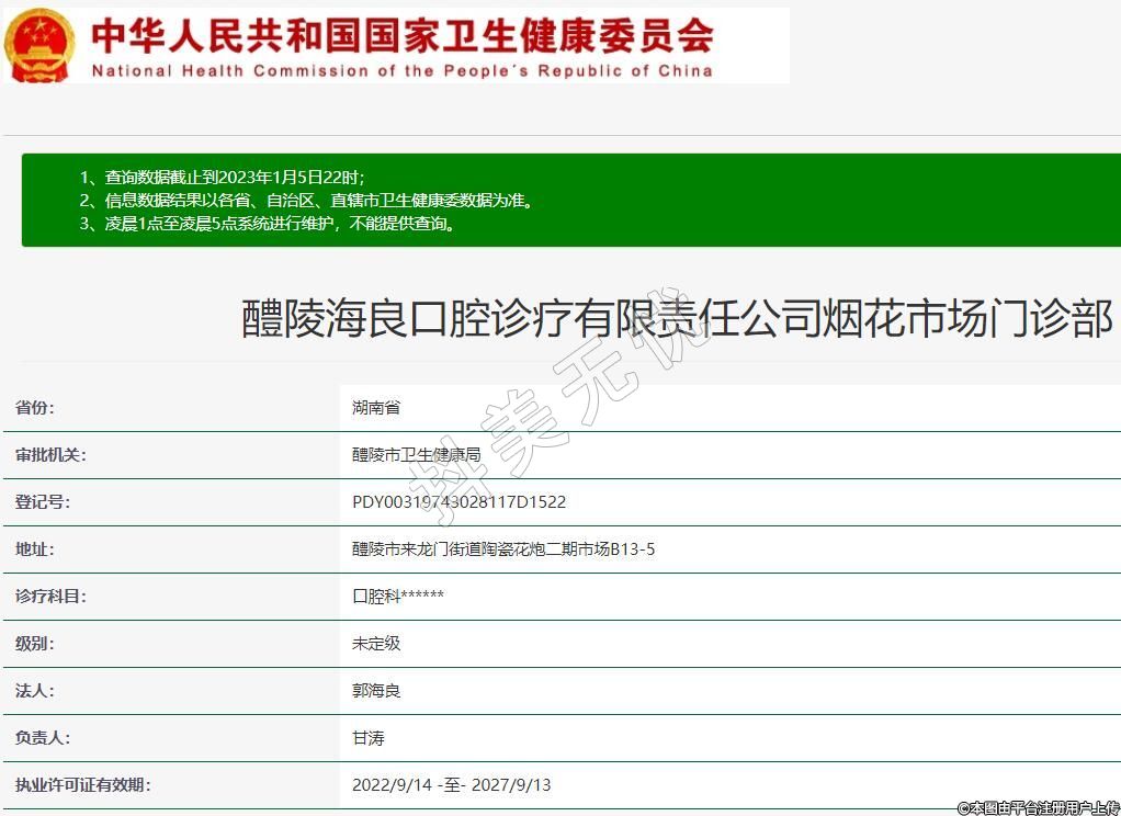 醴陵海良口腔診療有限責(zé)任公司煙花市場門診部