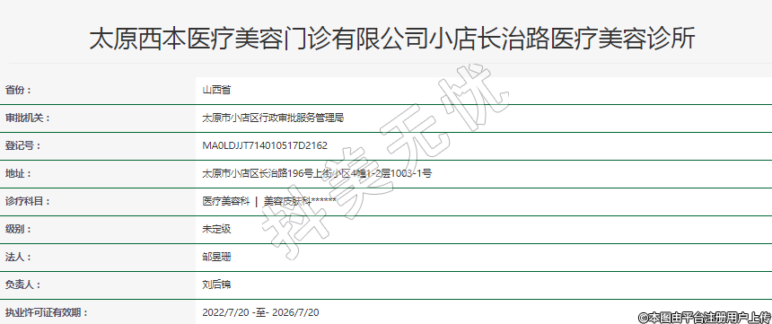 太原西本醫(yī)療美容門診有限公司小店長治路醫(yī)療美容診所