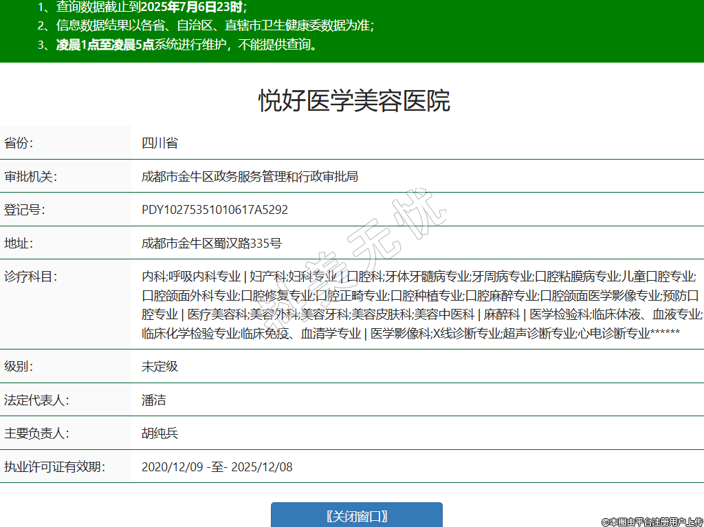 省份:四川省審批機(jī)關(guān):成都市金牛區(qū)政務(wù)服務(wù)管理和行政審批局登記號(hào):PDY10275351010617A5292地址:成都市金牛區(qū)蜀漢路335號(hào)診療科目:內(nèi)科;呼吸內(nèi)科專業(yè) | 婦產(chǎn)科;婦科專業(yè) | 口腔科;牙體牙髓病專業(yè);牙周病專業(yè);口腔粘膜病專業(yè);兒童口腔專業(yè);口腔頜面外科專業(yè);口腔修復(fù)專業(yè);口腔正畸專業(yè);口腔種植專業(yè);口腔麻醉專業(yè);口腔頜面醫(yī)學(xué)影像專業(yè);預(yù)防口腔專業(yè) | 醫(yī)療美容科;美容外科;美容牙科;美容皮膚科;美容中醫(yī)科 | 麻醉科 | 醫(yī)學(xué)檢驗(yàn)科;臨床體液、血液專業(yè);臨床化學(xué)檢驗(yàn)專業(yè);臨床免疫、血清學(xué)專業(yè) | 醫(yī)學(xué)影像科;X線診斷專業(yè);超聲診斷專業(yè);心電診斷專業(yè)******級(jí)別:未定級(jí)法定代表人:潘潔主要負(fù)責(zé)人:胡純兵執(zhí)業(yè)許可證有效期:2020/12/09 -至- 2025/12/08 -