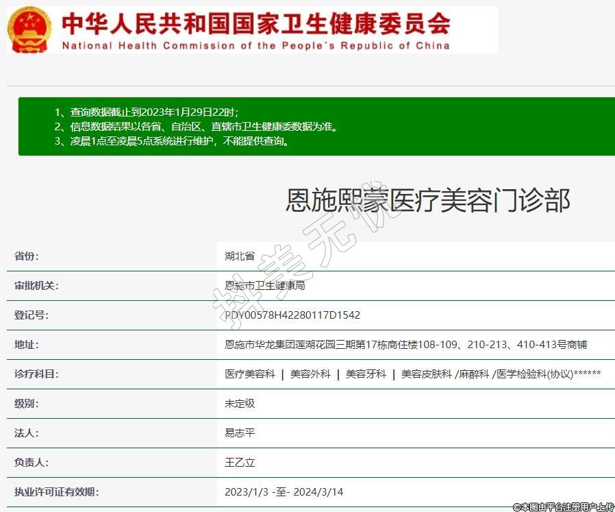 恩施熙蒙醫(yī)療美容門診部,診療科目:醫(yī)療美容科 | 美容外科 | 美容牙科 | 美容皮膚科 /麻醉科 /醫(yī)學檢驗科(協(xié)議)******