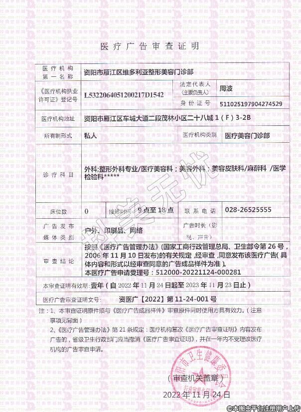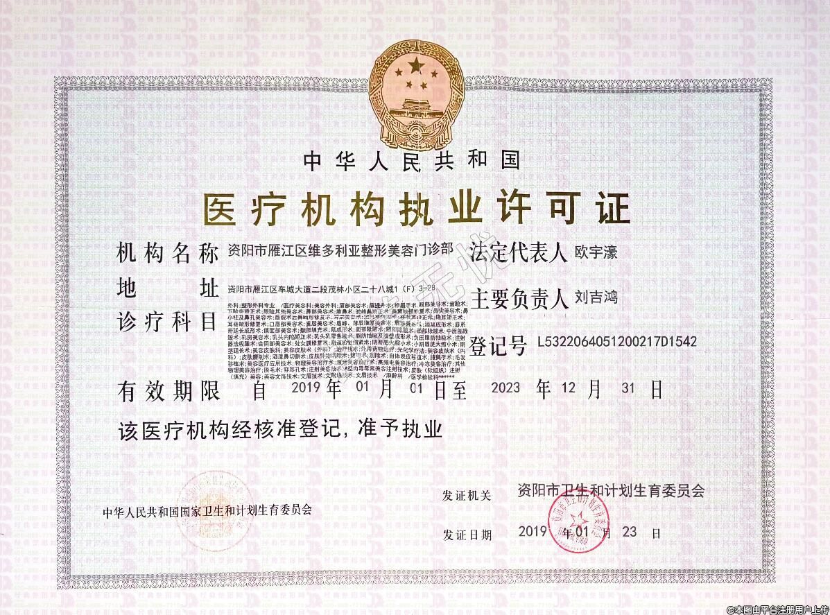 機(jī)構(gòu)名稱(chēng):資陽(yáng)市雁江區(qū)維多利亞整形美容門(mén)診部