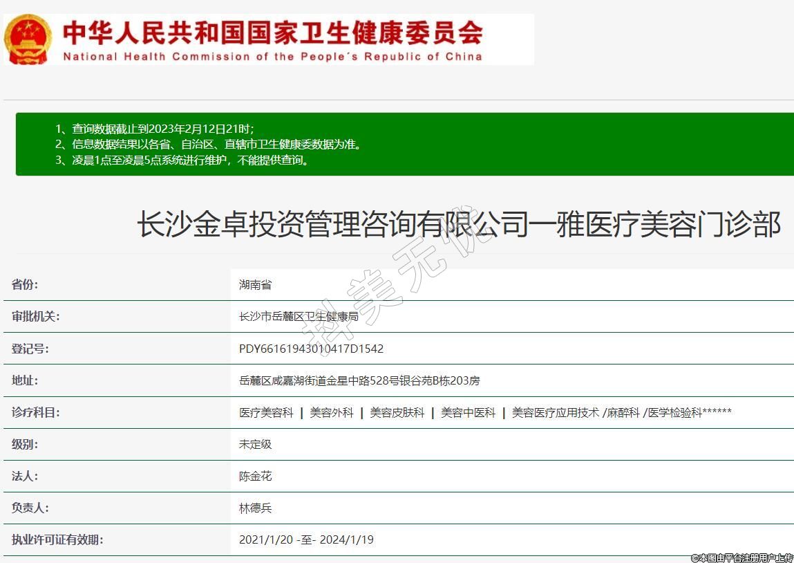 長沙金卓投資管理咨詢有限公司一雅醫(yī)療美容門診部