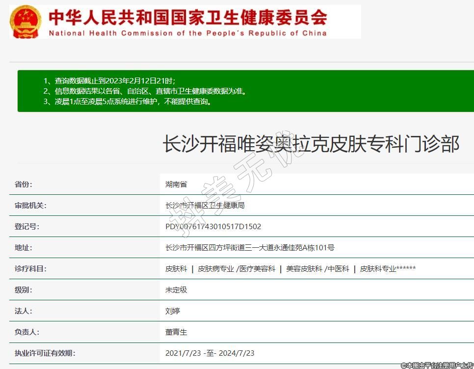 長沙開福唯姿奧拉克皮膚專科門診部,診療科目:皮膚科 | 皮膚病專業(yè) /醫(yī)療美容科 | 美容皮膚科 /中醫(yī)科 | 皮膚科專業(yè)******