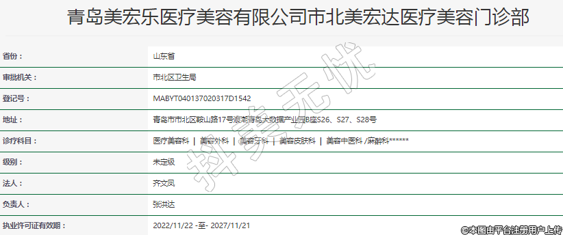 青島美宏樂醫(yī)療美容有限公司市北美宏達醫(yī)療美容門診部