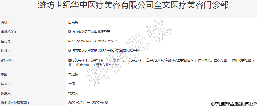 濰坊世紀華中醫(yī)療美容有限公司奎文醫(yī)療美容門診部