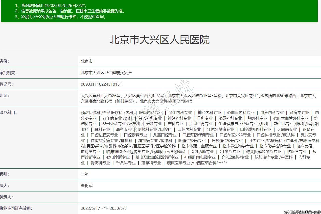 審批機關(guān):北京市大興區(qū)衛(wèi)生健康委員會