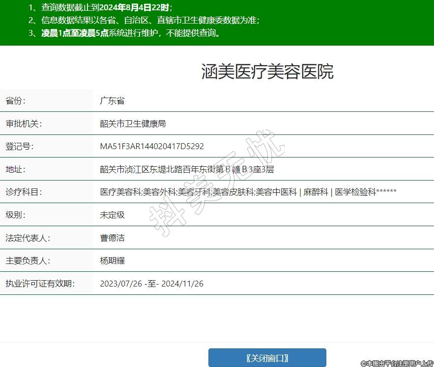 韶關(guān)涵美醫(yī)療美容醫(yī)院于2018年成立,醫(yī)院位于韶關(guān)市湞江區(qū)東堤北路百年東街B3棟三層,經(jīng)韶關(guān)市衛(wèi)健委批準(zhǔn)成立的正規(guī)醫(yī)療美容醫(yī)院,開設(shè)有整形美容、醫(yī)學(xué)美膚、無創(chuàng)美容、口腔美容4大科室。
