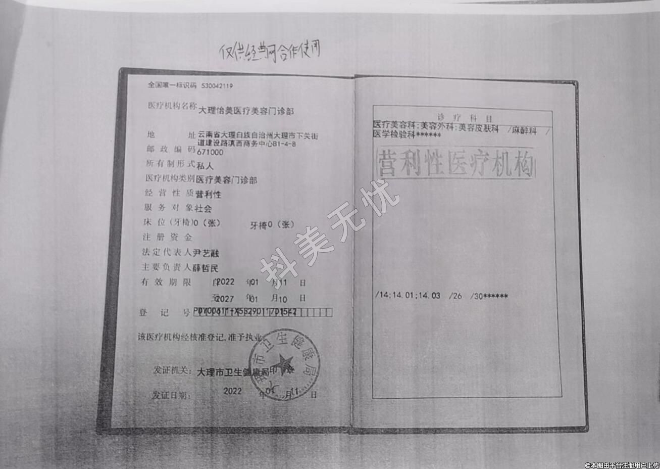 醫(yī)療機構(gòu)名稱:大理怡美醫(yī)療美容門診部