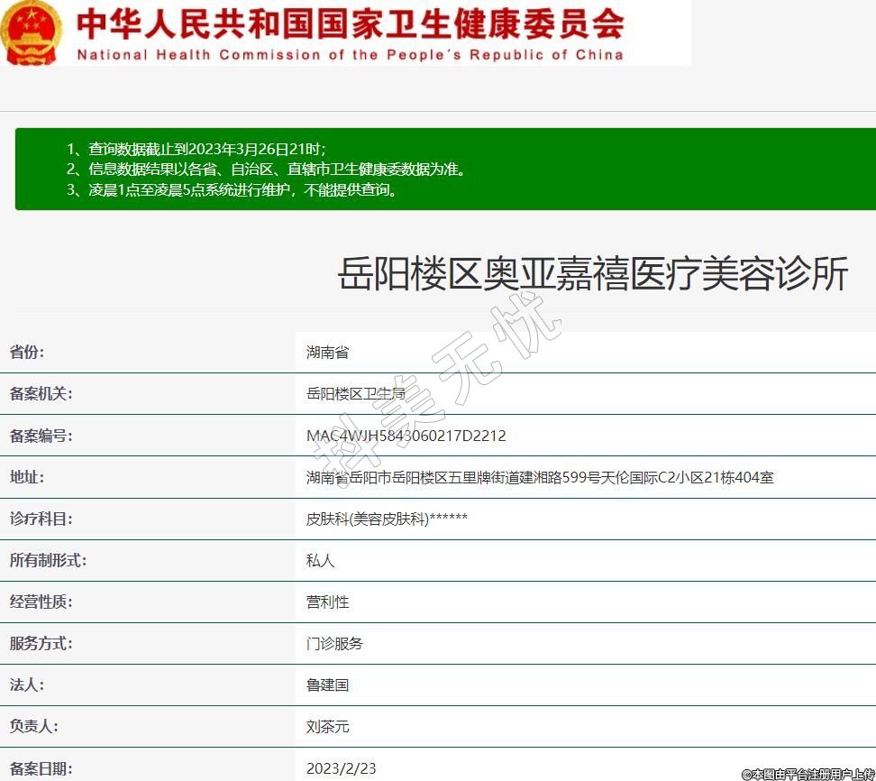 備案機(jī)關(guān):岳陽樓區(qū)衛(wèi)生局