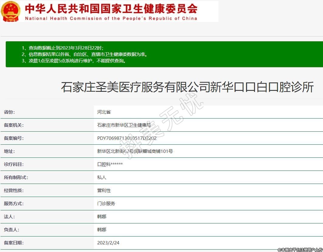 石家莊圣美醫(yī)療服務有限公司新華口口白口腔診所
