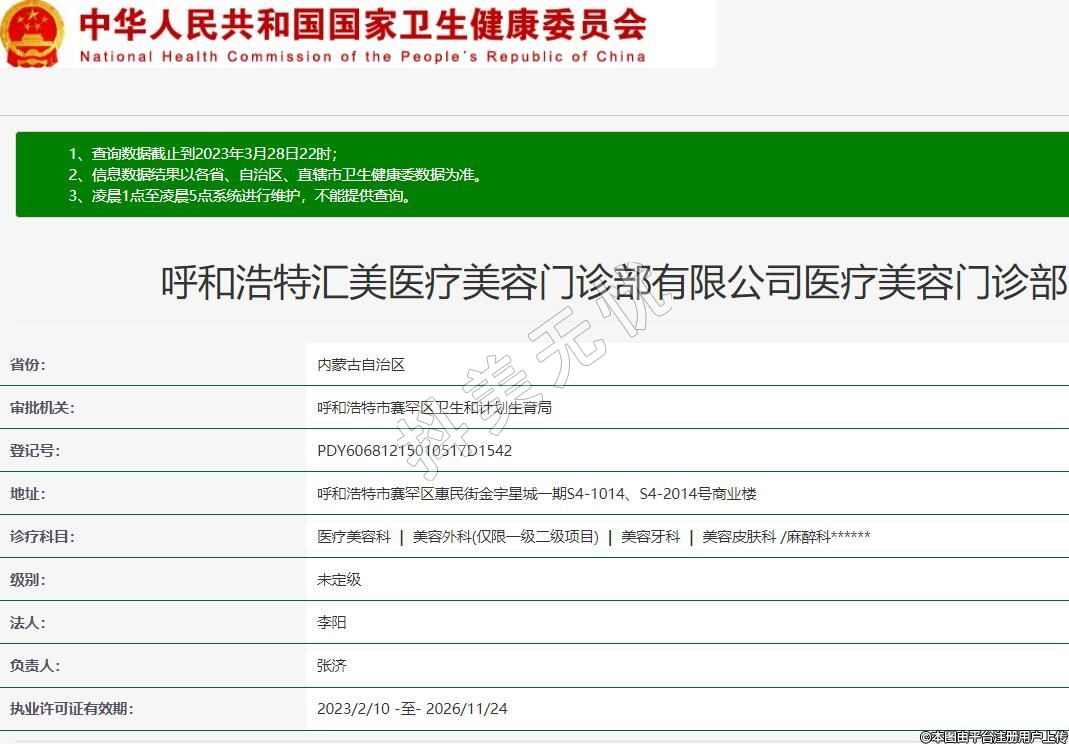 呼和浩特匯美醫(yī)療美容門診部有限公司醫(yī)療美容門診部