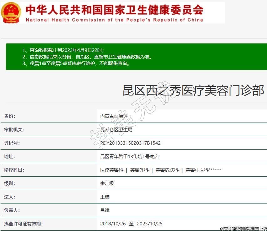執(zhí)業(yè)許可證有效期:2018/10/26 -至- 2023/10/25