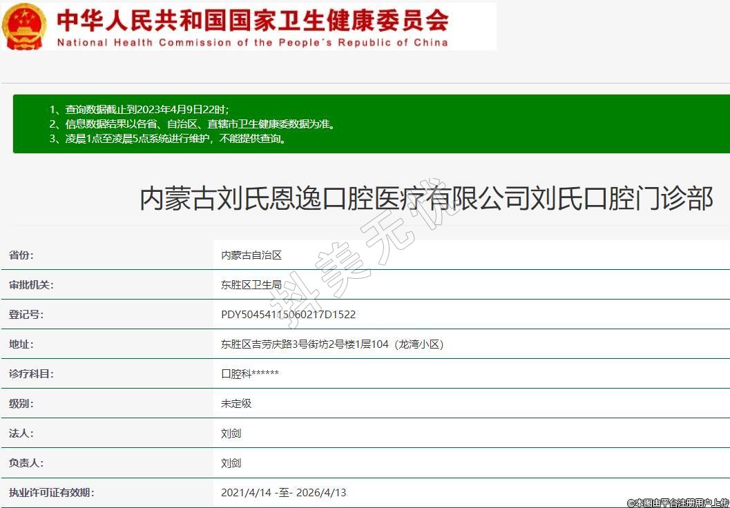 內(nèi)蒙古劉氏恩逸口腔醫(yī)療有限公司劉氏口腔門(mén)診部