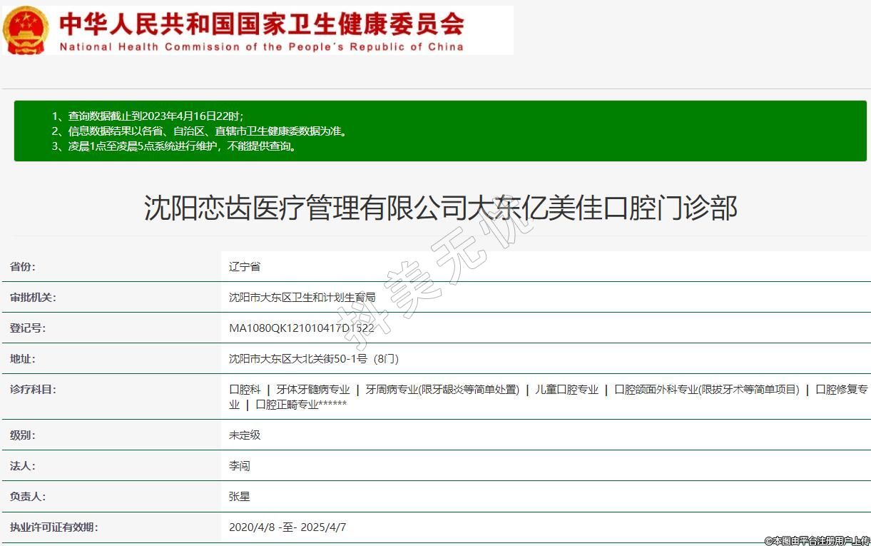 沈陽戀齒醫(yī)療管理有限公司大東億美佳口腔門診部
