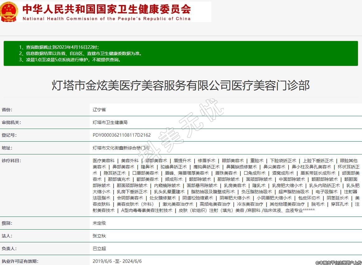 燈塔市金炫美醫(yī)療美容服務(wù)有限公司醫(yī)療美容門診部