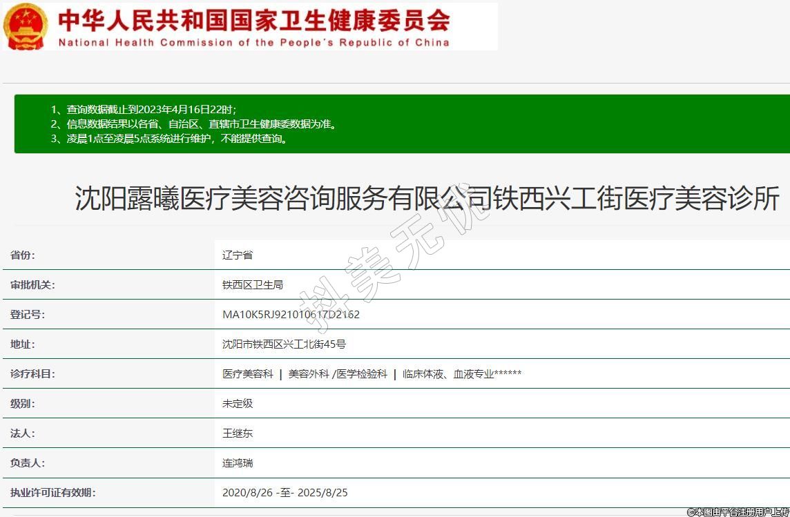 沈陽露曦醫(yī)療美容咨詢服務(wù)有限公司鐵西興工街醫(yī)療美容診所
