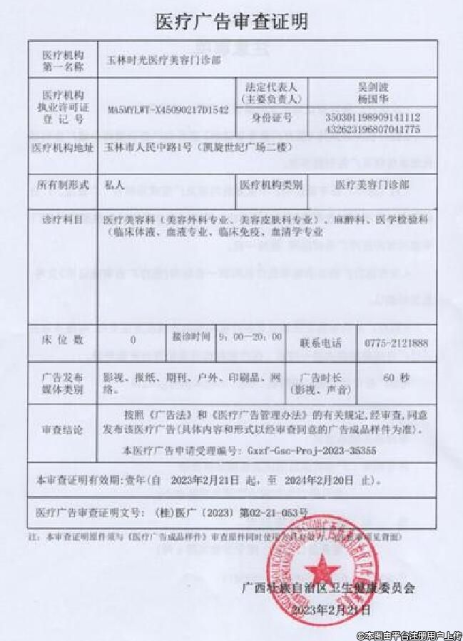 發(fā)證機關(guān):玉林市衛(wèi)生健康委員會