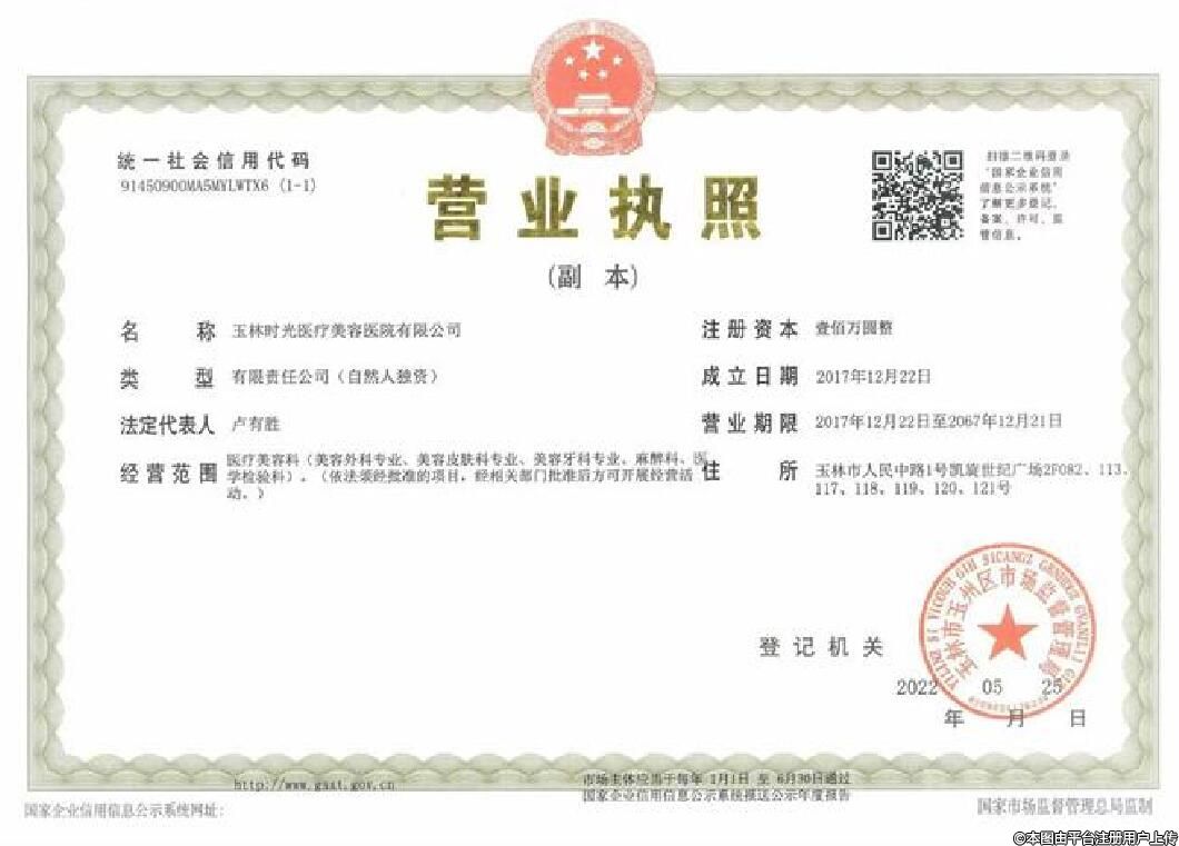 機構(gòu)名稱:玉林時光醫(yī)療美容門診部