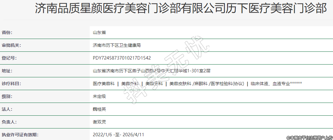 濟(jì)南品質(zhì)星顏醫(yī)療美容門診部有限公司歷下醫(yī)療美容門診部