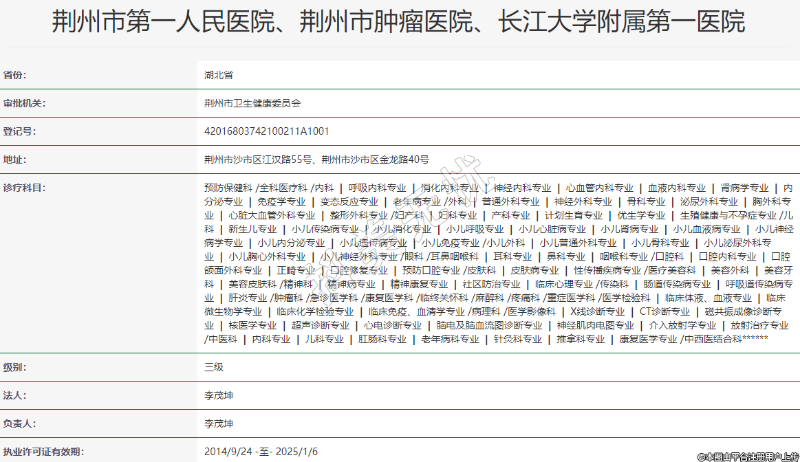 荊州市第一人民醫(yī)院、荊州市腫瘤醫(yī)院、長(zhǎng)江大學(xué)附屬第一醫(yī)院