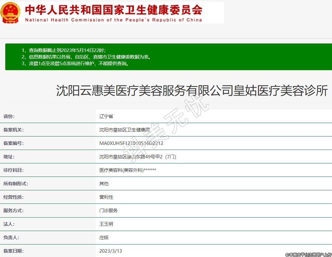 沈陽云惠美醫(yī)療美容服務(wù)有限公司皇姑醫(yī)療美容診所