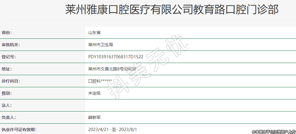萊州雅康口腔醫(yī)療有限公司教育路口腔門診部