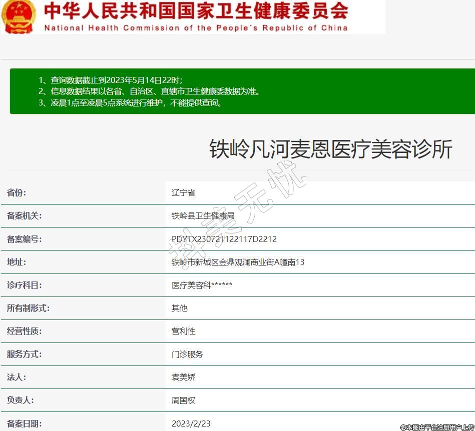 鐵嶺凡河麥恩醫(yī)療美容診所,診療科目:醫(yī)療美容科******