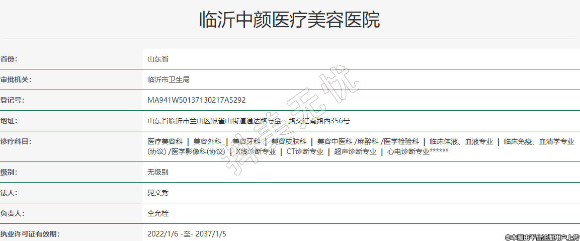 執(zhí)業(yè)許可證有效期:2022/1/6 -至- 2037/1/5