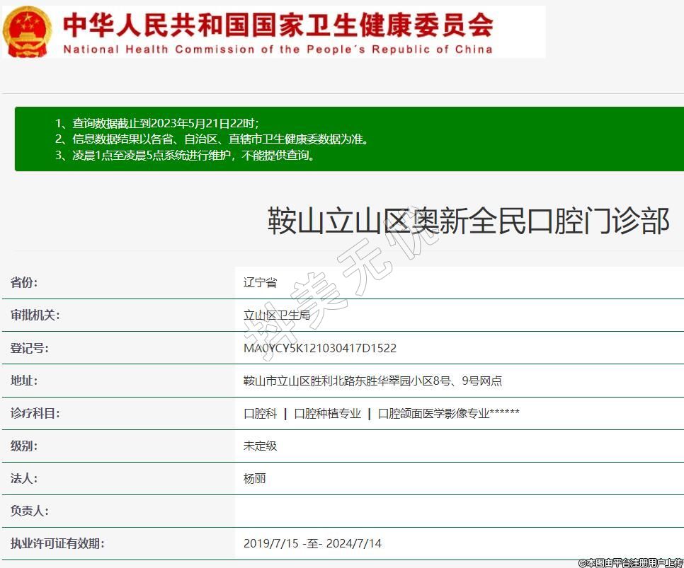 鞍山立山區(qū)奧新全民口腔門診部,診療科目:口腔科 | 口腔種植專業(yè) | 口腔頜面醫(yī)學(xué)影像專業(yè)******