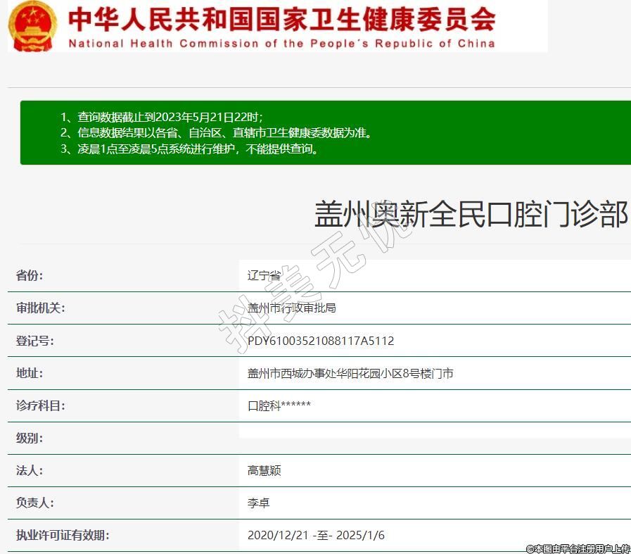 蓋州奧新全民口腔門診部,診療科目:口腔科******