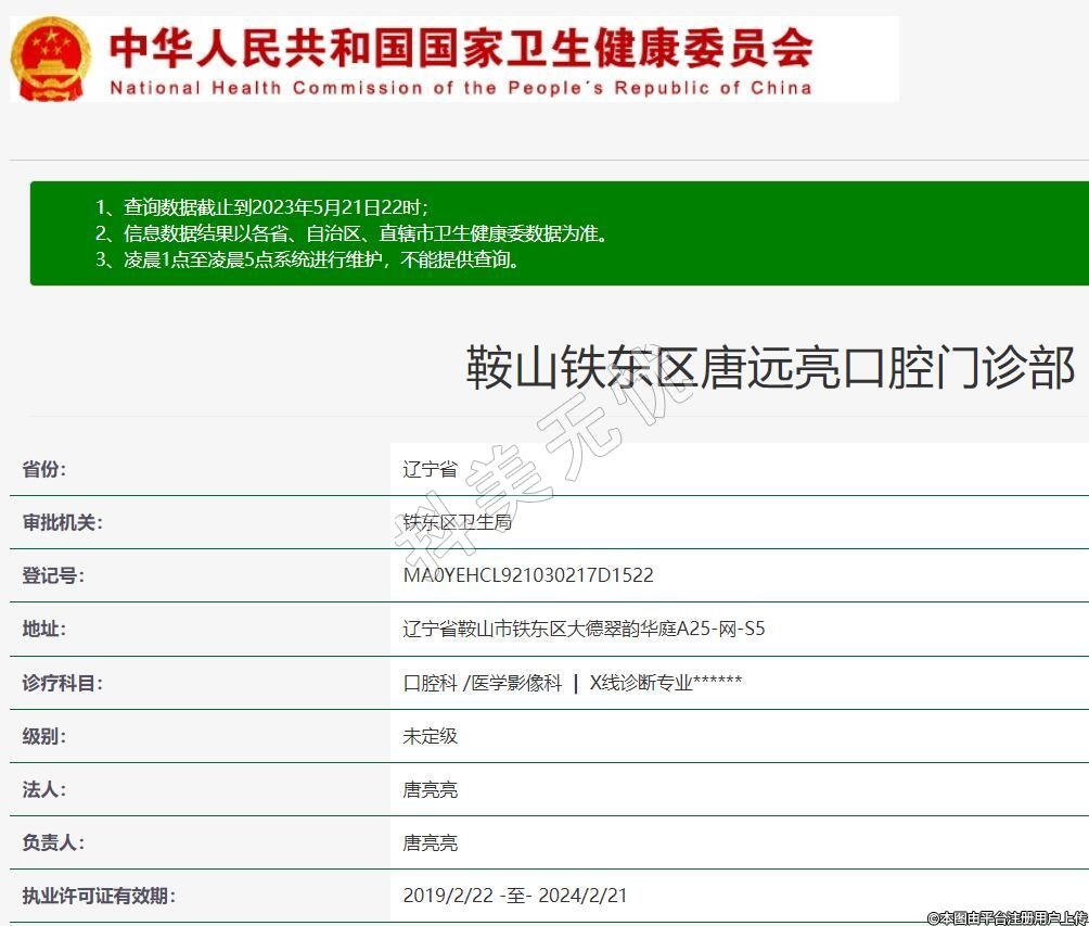鞍山鐵東區(qū)唐遠亮口腔門診部