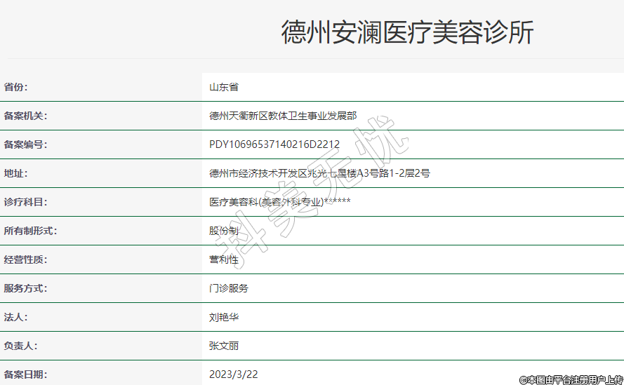 德州安瀾醫(yī)療美容診所,統(tǒng)一社會信用代碼:91371400MA3ENR2235,位于山東省德州市經(jīng)濟技術(shù)開發(fā)區(qū)宋官屯街道辦事處晶華路兆光七星樓A3號樓1-2層2號,于2017年創(chuàng)立。