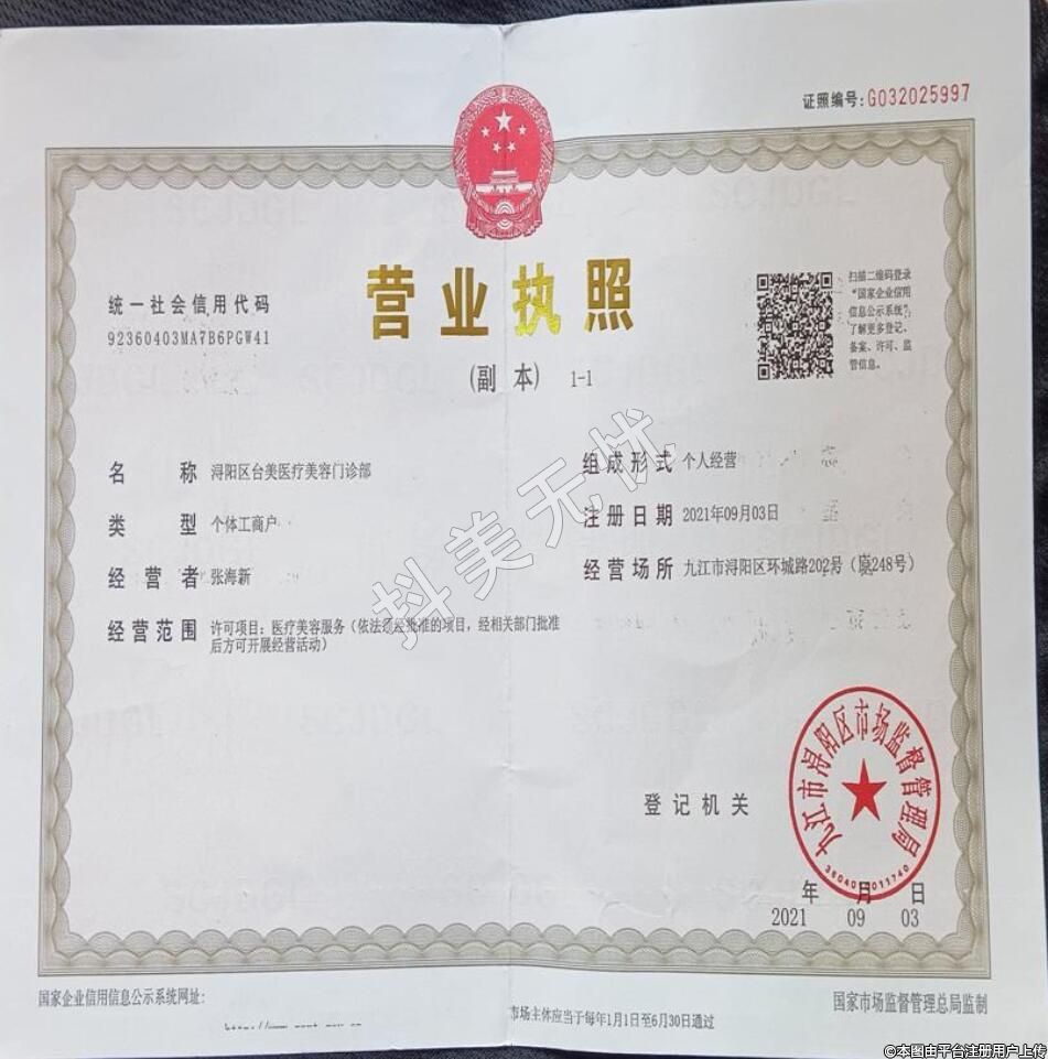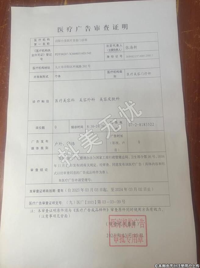 醫(yī)療機(jī)構(gòu)名稱:潯陽(yáng)臺(tái)美醫(yī)療美容門診部