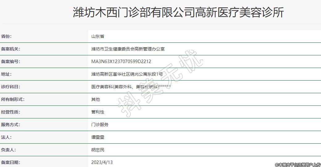 濰坊木西門診部有限公司高新醫(yī)療美容診所