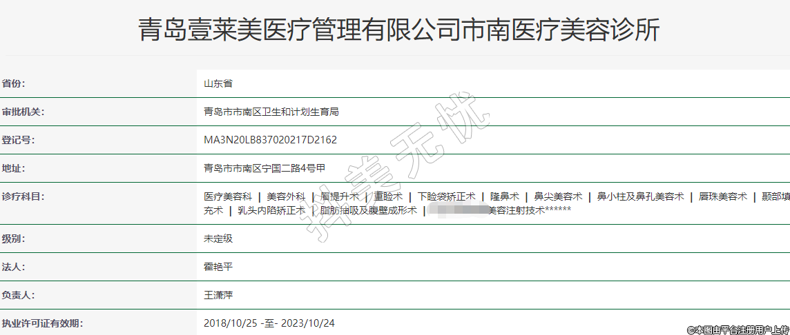 青島壹萊美醫(yī)療管理有限公司市南醫(yī)療美容診所