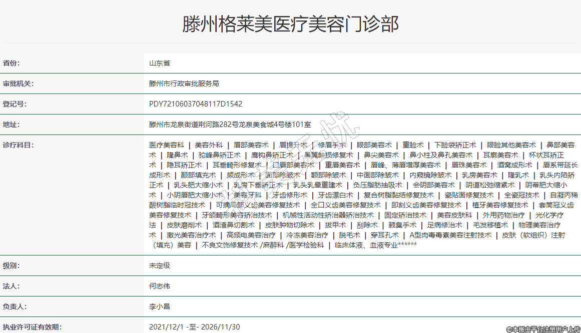 執(zhí)業(yè)許可證有效期:2021/12/1 -至- 2026/11/30