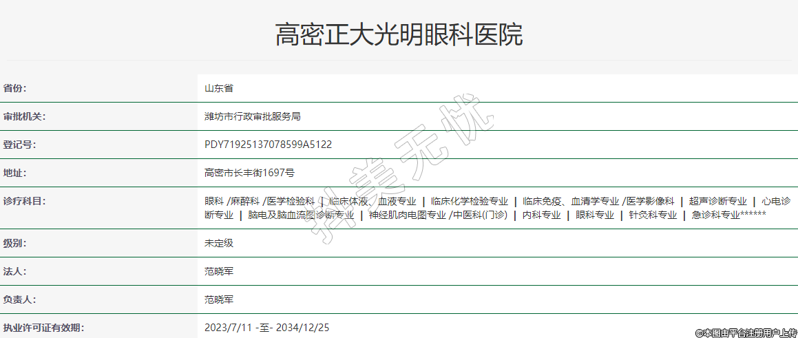 高密正大光明眼科醫(yī)院