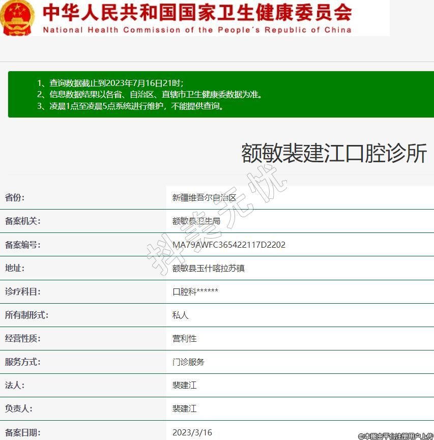 額敏裴建江口腔診所,診療科目:口腔科******