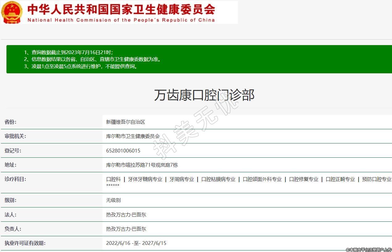 審批機關:庫爾勒市衛(wèi)生健康委員會