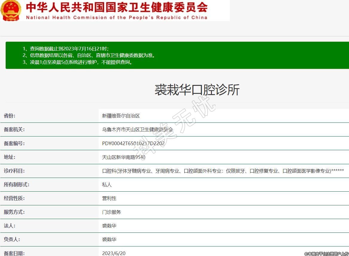 備案機關:烏魯木齊市天山區(qū)衛(wèi)生健康委員會