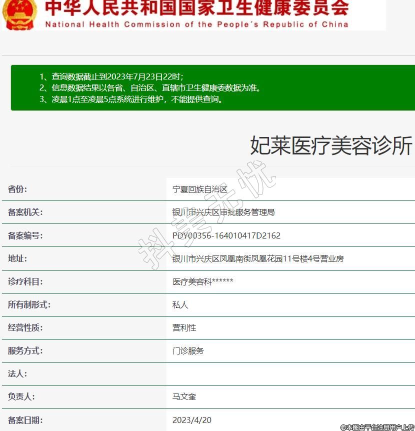 銀川妃萊醫(yī)療美容診所成立于2021年,統(tǒng)一社會信用代碼:92640100MA76P0Q58L,地處于銀川市興慶區(qū)鳳凰南街鳳凰花園11號樓4號營業(yè)房。診所聚集了多位有實力的醫(yī)生團,不斷精進、與國際接軌,通過肌膚醫(yī)學定制管理+年輕態(tài)醫(yī)學定制管理兩大模塊,全心致力于為每位求美者打造專屬于自己的年輕、健康、素顏美肌。