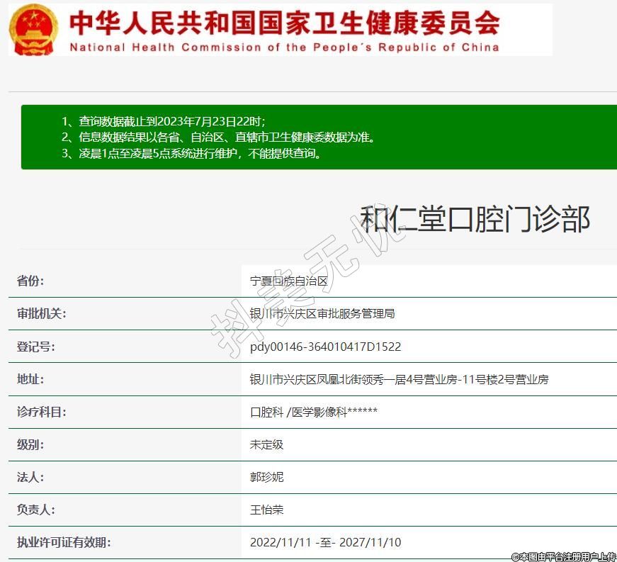 執(zhí)業(yè)許可證有效期:2022/11/11 -至- 2027/11/10