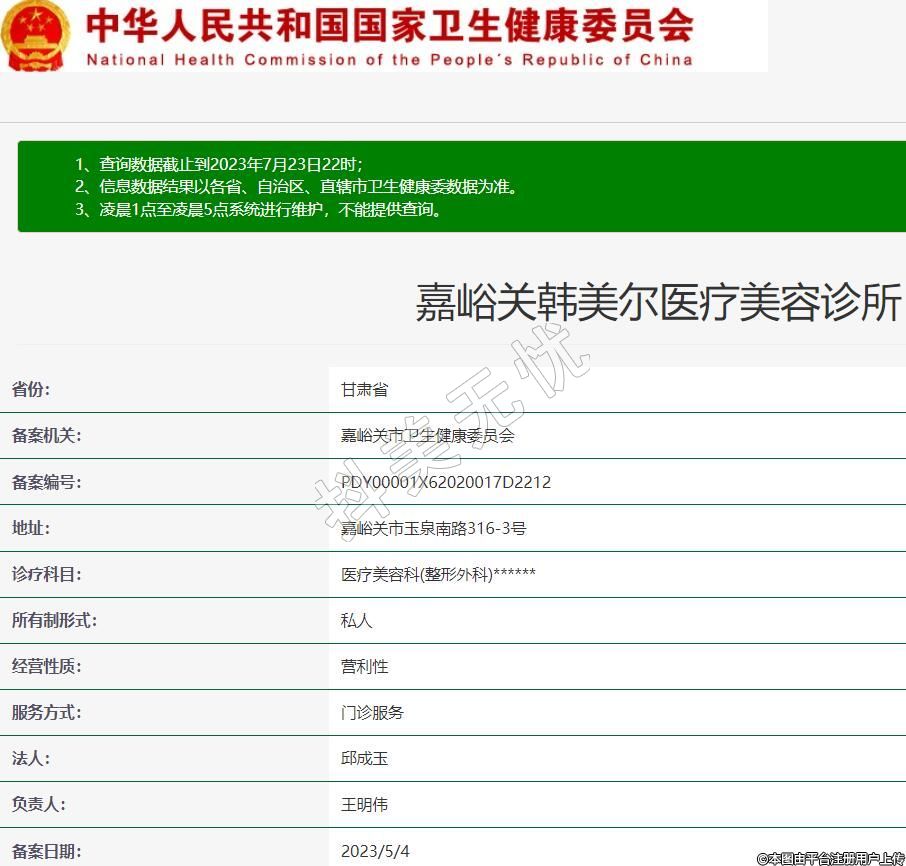 嘉峪關韓美爾醫(yī)療美容,診療科目:醫(yī)療美容科(整形外科)******