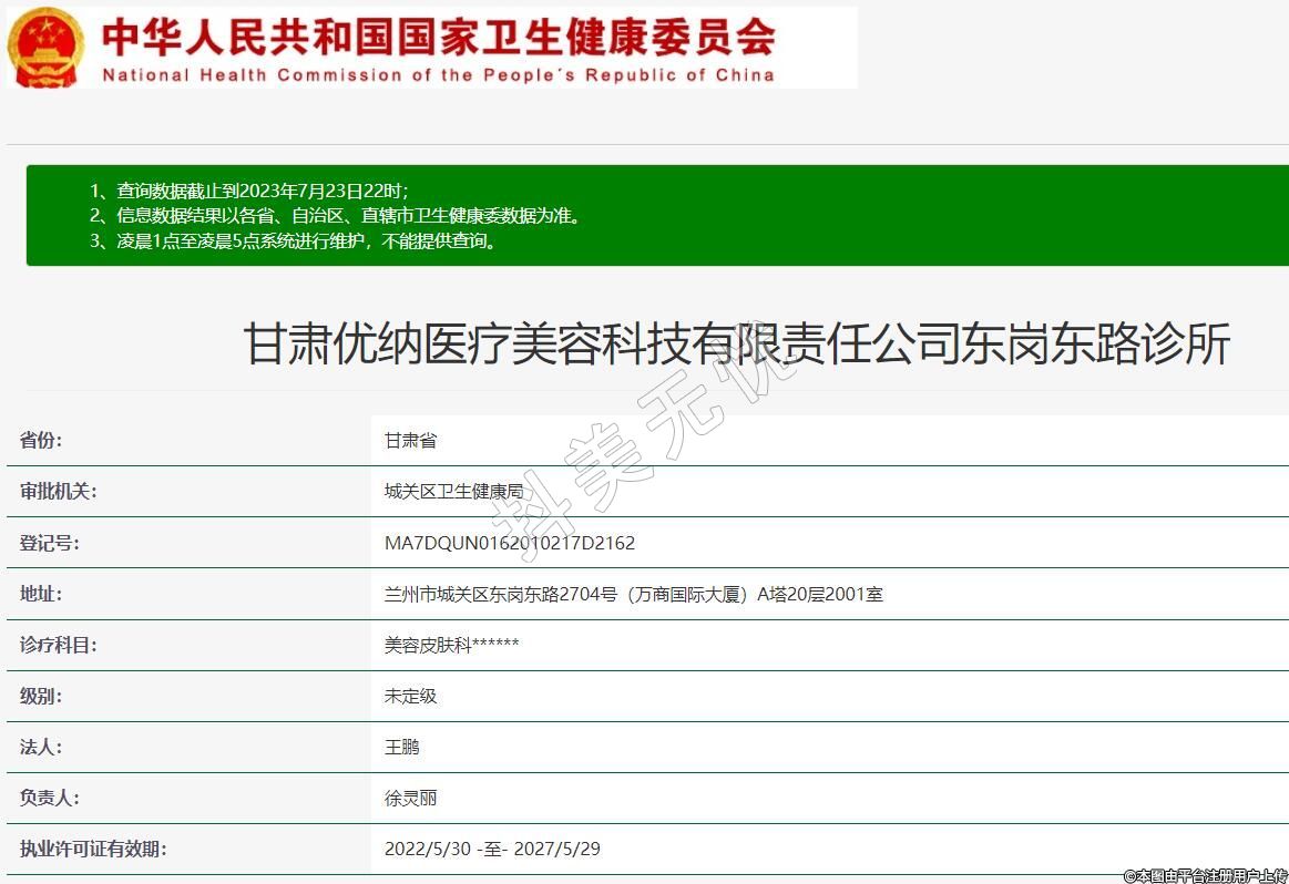 甘肅優(yōu)納醫(yī)療美容科技有限責(zé)任公司東崗東路診所