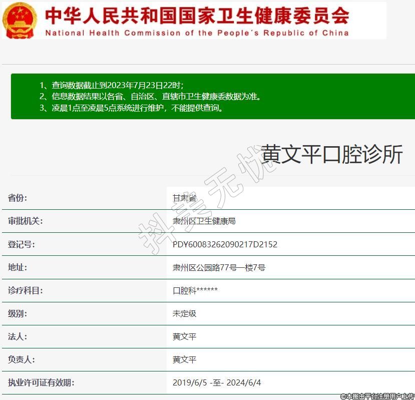 酒泉黃文平口腔