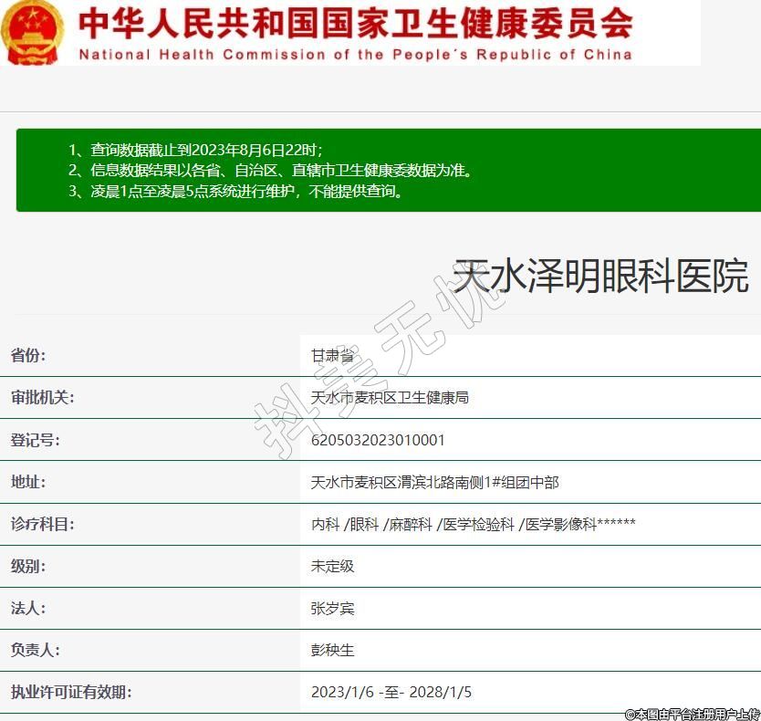 審批機(jī)關(guān):天水市麥積區(qū)衛(wèi)生健康局