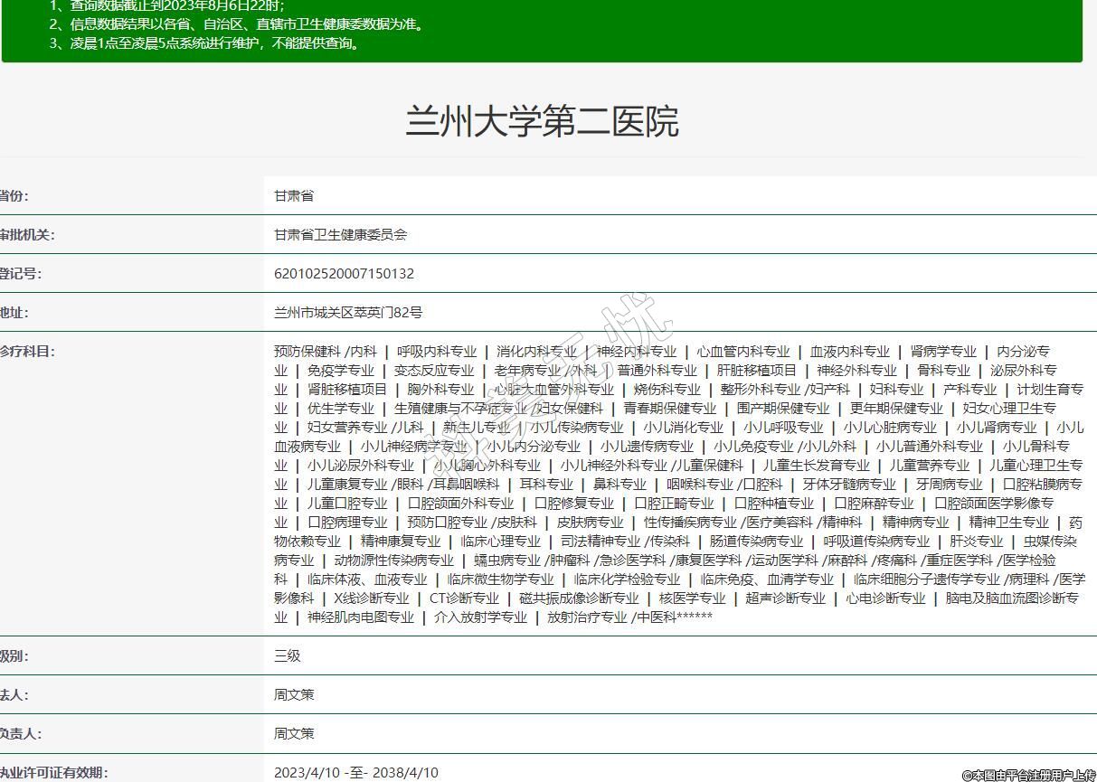 執(zhí)業(yè)許可證有效期:2023/4/10 -至- 2038/4/10