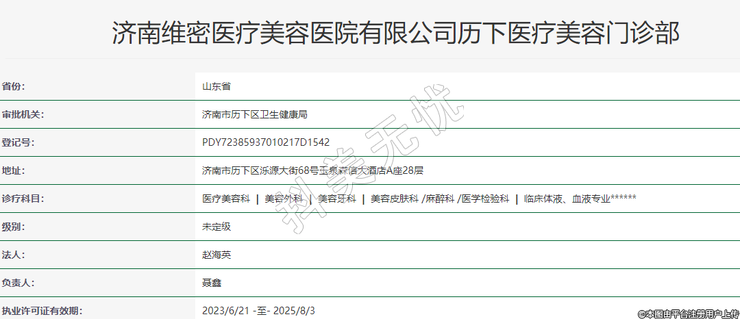 濟(jì)南維密醫(yī)療美容醫(yī)院有限公司歷下醫(yī)療美容門診部